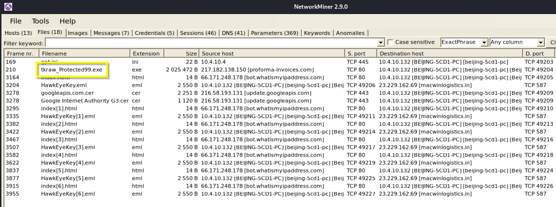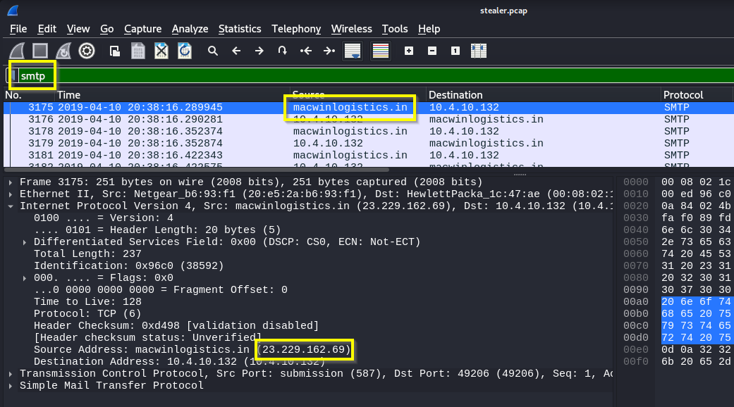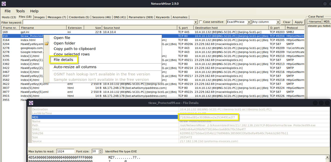 An accountant at your organization received an email regarding an invoice with a download link. Suspicious network traffic was observed shortly after opening the email. As a SOC analyst, investigate the network trace and analyze exfiltration attempts.