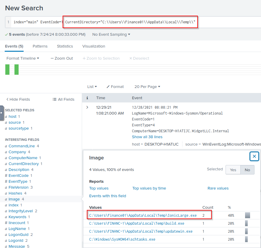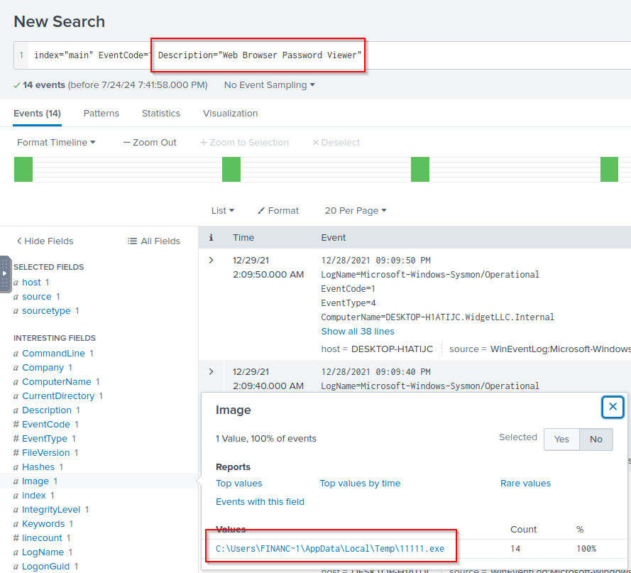 A newly acquired customer (Widget LLC) was recently onboarded with the managed Splunk service. The sensor is live, and all the endpoint events are now visible on TryNotHackMe’s end. Widget LLC has some concerns with the endpoints in the Finance Dept, especially an endpoint for a recently hired Financial Analyst. The concern is that there was a period (December 2021) when the endpoint security product was turned off, but an official investigation was never conducted.