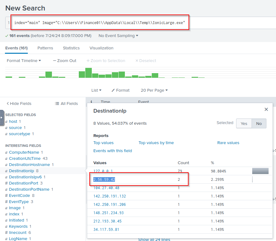 Q: The binary from the previous question made two outbound connections to a malicious IP address. What was the IP address? Enter the answer in a defang format.