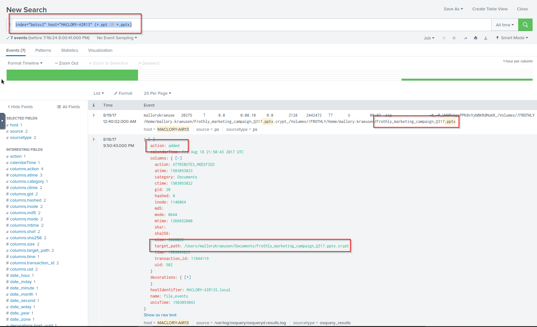 Q: Mallory’s critical PowerPoint presentation on her MacBook gets encrypted by ransomware on August 18. What is the name of this file after it was encrypted?