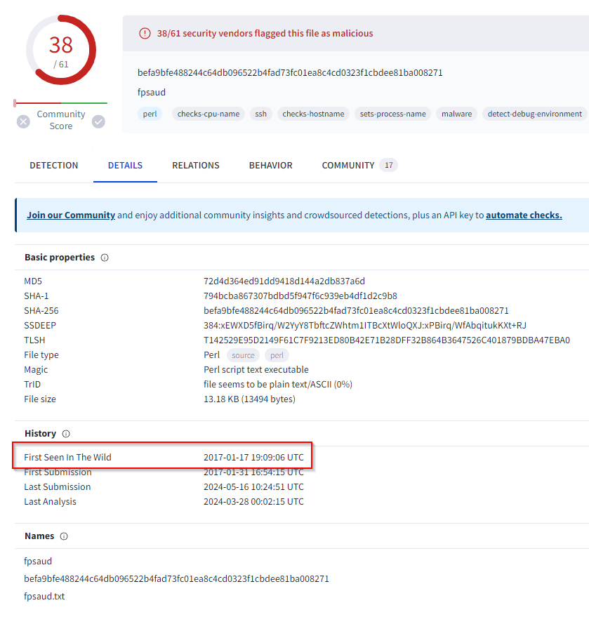 Q: When was this malware first seen in the wild? Answer Guidance: YYYY-MM-DD