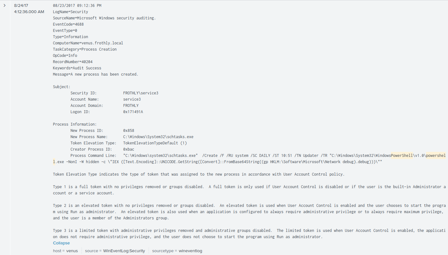 The data included in this app was generated in August of 2017 by members of Splunk’s Security Specialist team - Dave Herrald, Ryan Kovar, Steve Brant, Jim Apger, John Stoner, Ken Westin, David Veuve and James Brodsky. They stood up a few lab environments connected to the Internet. Within the environment they had a few Windows endpoints instrumented with the Splunk Universal Forwarder and Splunk Stream. The forwarders were configured with best practices for Windows endpoint monitoring, including a full Microsoft Sysmon deployment and best practices for Windows Event logging. The environment included a Palo Alto Networks next-generation firewall to capture traffic and provide web proxy services, and Suricata to provide network-based IDS.