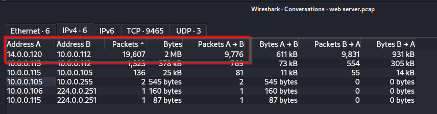 Q: Given the suspicious activity detected on the web server, the pcap analysis shows a series of requests across various ports, suggesting a potential scanning behavior. Can you identify the source IP address responsible for initiating these requests on our server?