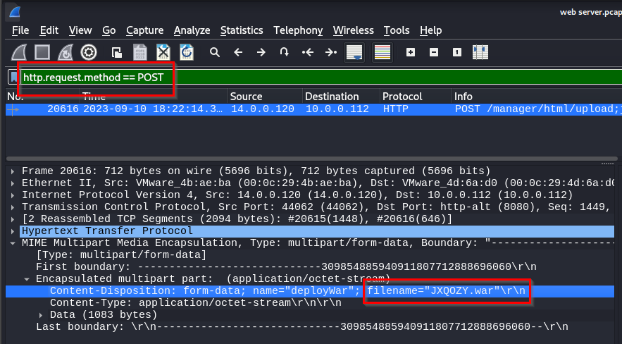 Our SOC team has detected suspicious activity on one of the web servers within the company’s intranet. In order to gain a deeper understanding of the situation, the team has captured network traffic for analysis. This pcap file potentially contains a series of malicious activities that have resulted in the compromise of the Apache Tomcat web server. We need to investigate this incident further.